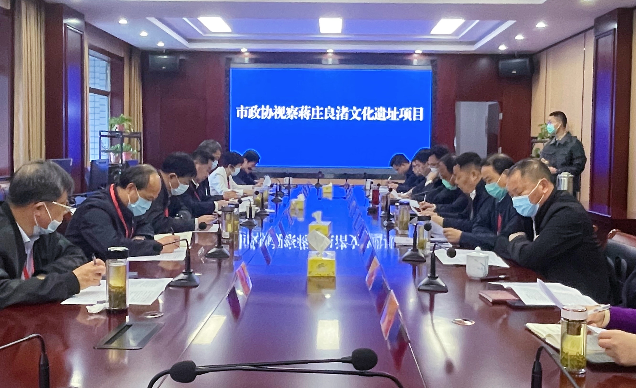 徐立华一行实地考察了蒋庄良渚文化遗址展示馆和遗骸临时修复室,详细了解了遗址项目的历史价值、文化价值、规划建设和管理保护等情况。在随后召开的座谈会上,与会人员围绕推进蒋庄良渚文化遗址项目保护工作,从体制、传承、展示等方面积极建言献策。