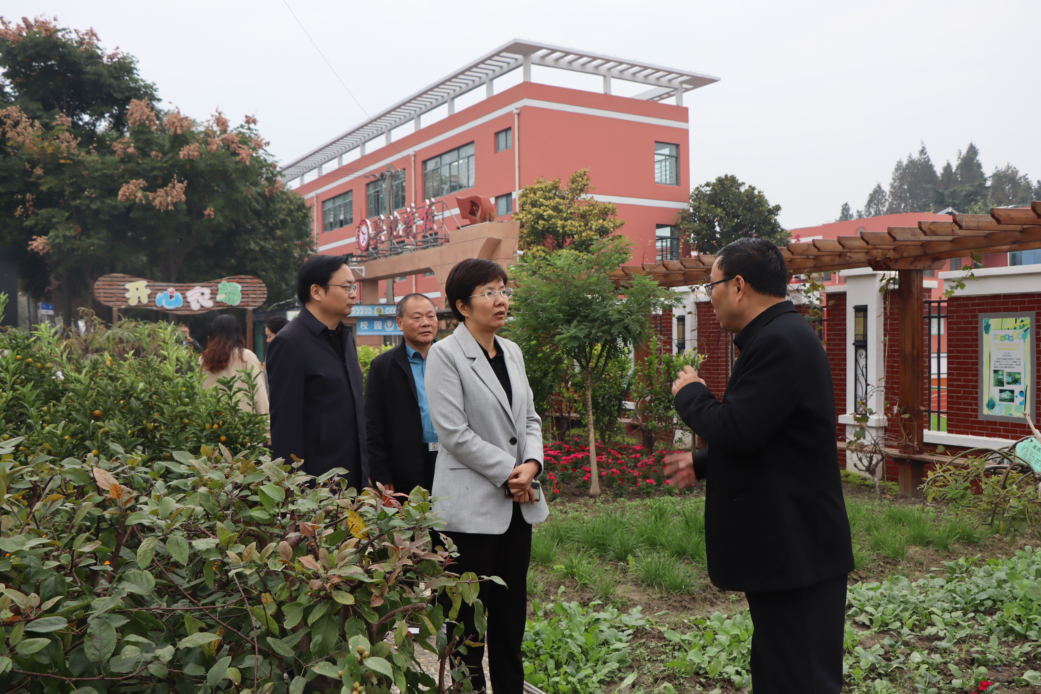 在顾庆春校长的带领下委员们首先参观了校园:别致的假山喷泉、生机勃勃的开心农场、丰富多彩活动的展板......给委员们留下了深刻的印象。